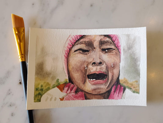 Little Girl, Big Feelings - Original 4x6in. Gouache Painting