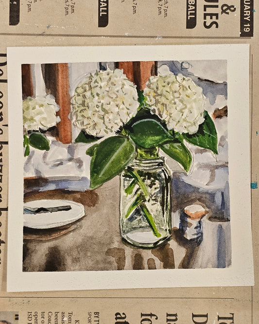 Hydrangea Summer - Original 5x5in. Gouache Painting