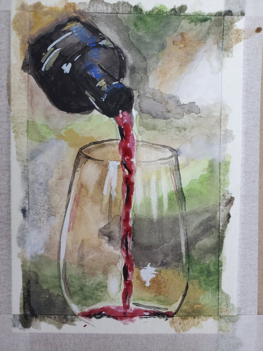 One Last Pour (Wine) - Original 6x4in. Gouache Painting