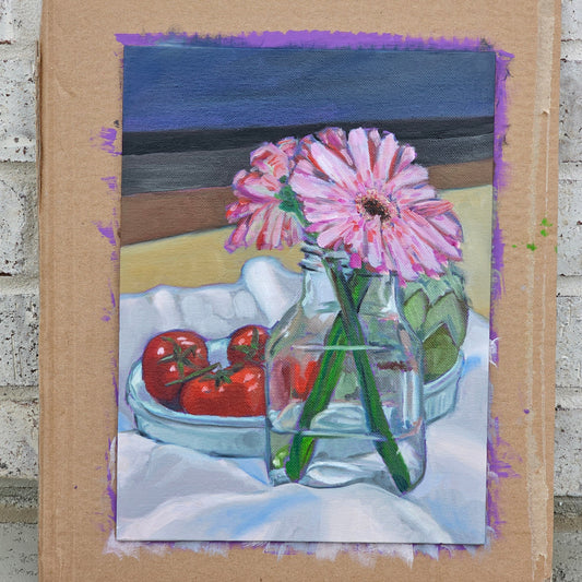 Tomatoes and Gerberas - Original 12x9in. Oil Painting
