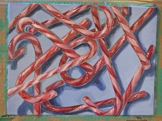 Candy Cane Tangle - Original 9x12in. Oil Painting